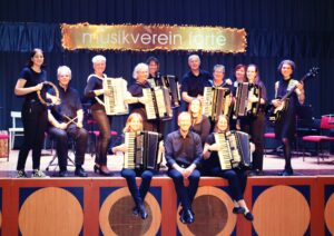 artin Hlavacek die Santa-Mütze schwungvoll und lässt die Forte mit Major Tom abheben, völlig losgelöst vom Coronahickhack der letzten zwei Jahre. Stimmungshebend auch Hard Rock Cafe und Elvis Forever bei dem das geneigte Publikum den Tanzfloh in den Fußspitzen spürt. A Whiter Shade of Pale bringt ebenso wie Summertime die süße Schwere des Sommerblues in den Saal, aufgeheizt von In the Mood und einem Ray Charles Medley werden die Konzertbesuchenden wieder zu Liptauer und Frühlingsaufstrich entsandt, bevor mit dem zweiten Teil der Konzerttitel Don’t Stop Us Now! endlich Programm wird. Die Forte hat sich eingegrooved, rotwangig von der allgemeinen Aufregung, der Freude am gemeinsamen Musikmachen und dem einen oder anderen Gläschen Schampus in der Pause, fliegen die Finger über die Tasten, rühren die Sticks in der Snare Drum, werden alle Oktaven des Klaviers bedient und walked der Bass durch das vereinte Klangtheater. Endlich wieder live, endlich wieder forte sein dürfen. Als Partykracher ABBA vom Orchester und dem Publikum Besitz ergreift, ist der Sommer der Siebziger zu schmecken, Gilbert Becaud säuselt nicht nur den Frankophilen Zärtlichkeiten zu und John Miles Music rüttelt alle im 7/8-Takt aus den Sitzen. Ja, die rund 250 köpfige Fanbase der Forte verlangt nach einer Zugabe und die warmgelaufenen Fortianer*innen (diesmal teilweise in neuer Besetzung!) liefern mit Back to the Sixtees einen Schlussakkord, der sich hören lassen kann. Die Forte unter der Leitung von Conférencier, Dirigent und ungebrochenem Charmeur Martin Hlavacek entlässt das Publikum in die Sommerpause, am Buffet wird die vom Mitsingen heisere Kehle mit einem letzten Schmalzbrot geschmeidig geschmiert, dann zieht das Publikum langsam hinaus in den lauen Abend.