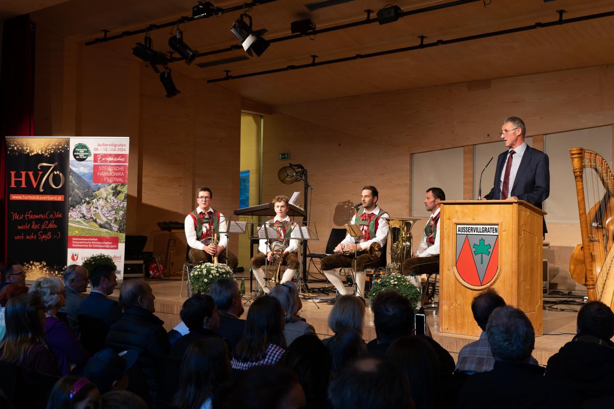 Bürgermeister Mag. Josef Mair bei seiner Festansprache bei der Abschlußveranstaltung mit seinem Wunsch nach einer fünften Harmonika-WM