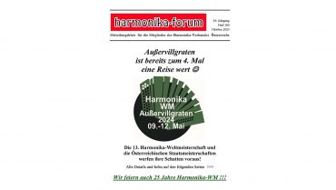 Aus dem Inhalt: Harmonika-WM 2026 in St. Vigil – Vorschau Festkonzert anlässlich des 90. Geburtstags von Felix Lee Internationaler Fünf-Länder-Wettbewerb für Harmonika-Solisten in Slowenien 78. Coupe Mondiale in Sarajewo Auf nach Slowenien: Der große Harmonika-Weltrekord 2026 Steirisch aufg’spielt Die 11. Akkordeontage in…