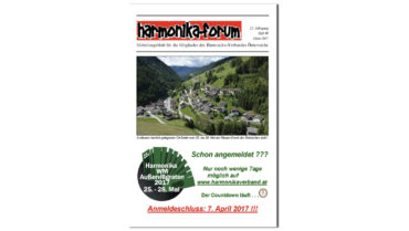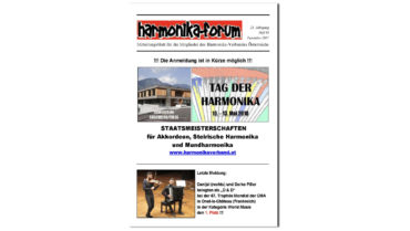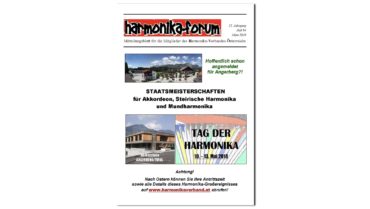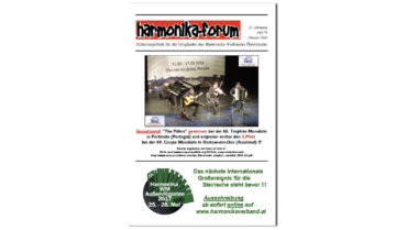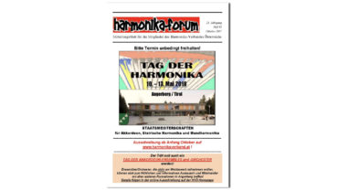 Aus dem Inhalt: Tag der Harmonika 2018 – Alle Ergebnisse, Bericht und viele Bilder HVÖ-Workshop mit Peter Michael Haas !!! Steirisch aufg’spielt Noten Steirische Harmonika Akkordeon Plus in Rostow-am-Don Der 55. Internationale Wettbewerb in Klingenthal – sehr interessant! “Südlich der Alpen” ist…