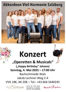 Mehr erfahren »OPERETTEN & MUSICALS mit der Akkordeon-Viel-Harmonie Salzburg